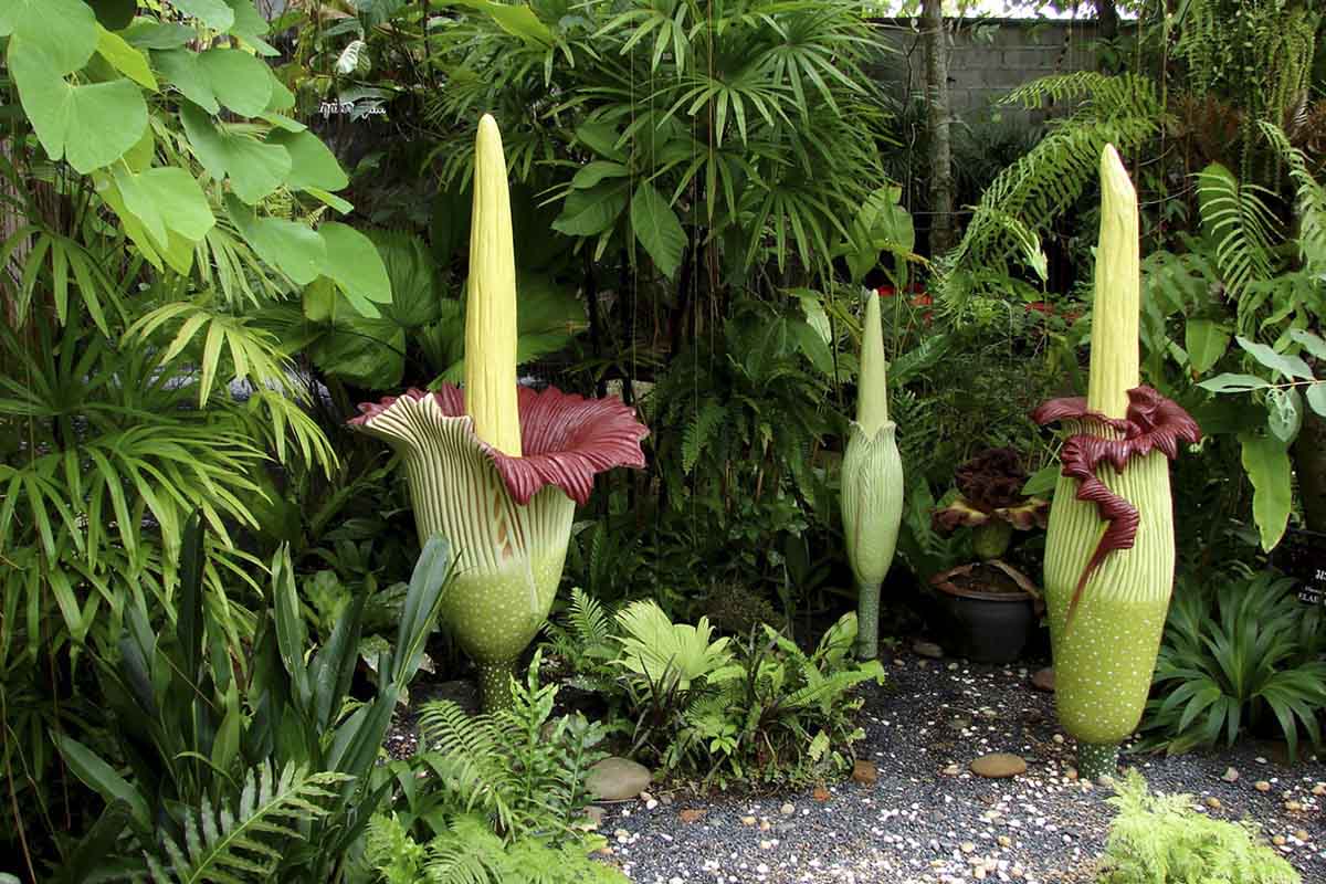 Es una planta que crece en las selvas tropicales de Sumatra, una de las islas de Indonesia. Puede llegar a alcanzar los 3 metros de altura y los 1.5 metros de diámetro, lo que le da una apariencia espectacular. Cabe destacar también que esta planta puede llegar a vivir 40 años, pero que a lo largo de su vida solamente tiene tres o cuatro floraciones y sus flores apenas duran tres días.Sin embargo, no todo lo que brilla es oro, ya que en su interior guarda un secreto: a esta planta se le conoce como “flor cadáver” por el desagradable olor que desprende. ¡Para que luego no digan que todas las flores huelen bien!